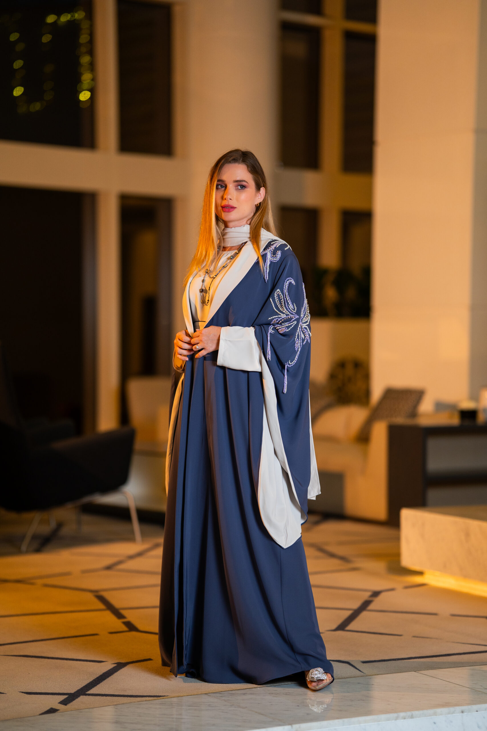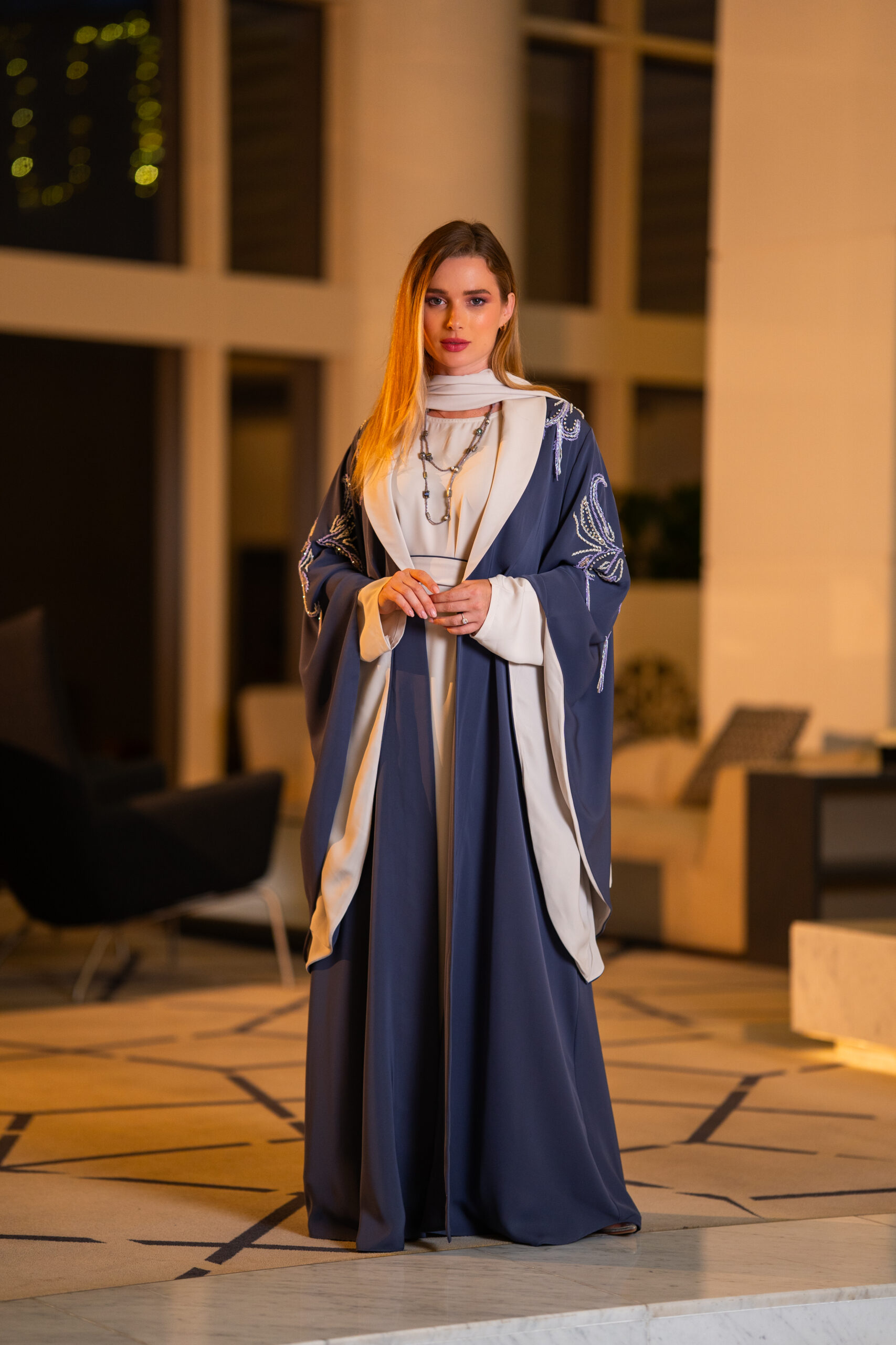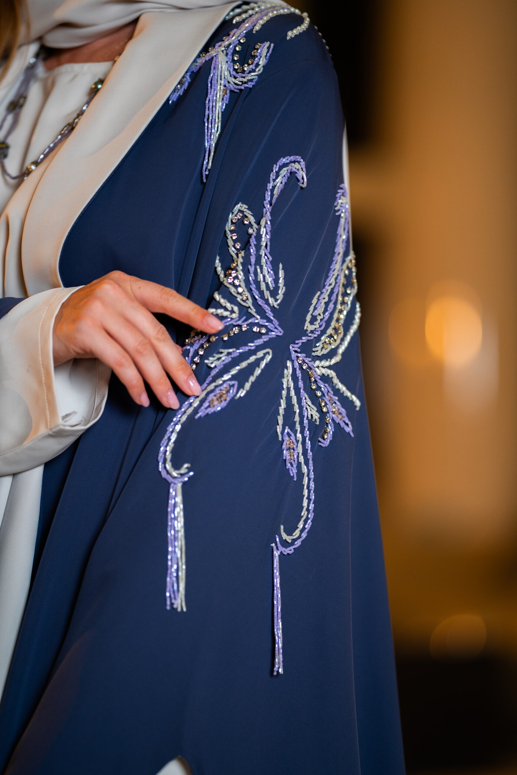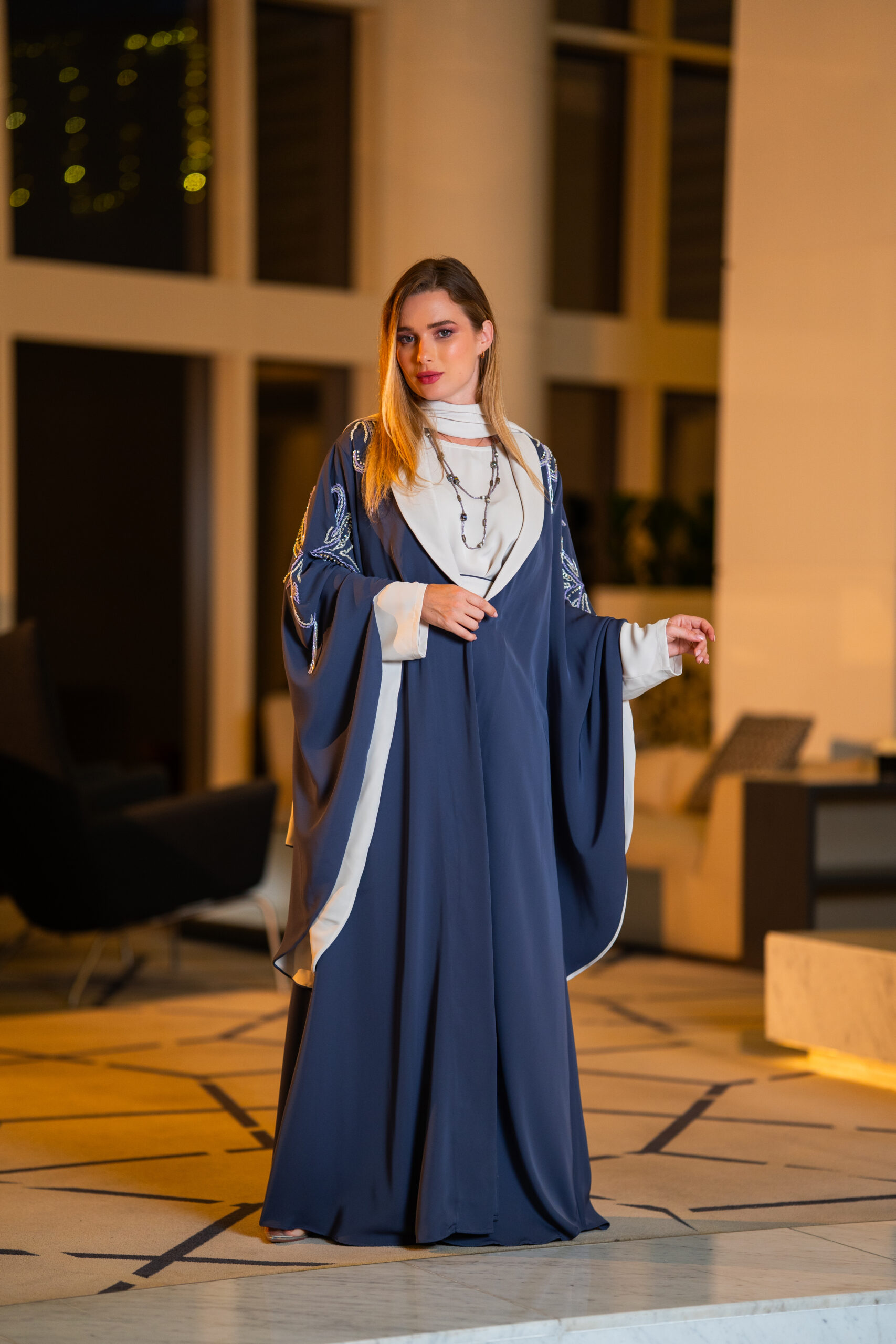 Handmade embellished Abaya with stylish design. It comes with elegant maxi dress. Perfect for gathering and Eid Celebration. It is made from high quality fabric that has soft and luxurious feel.